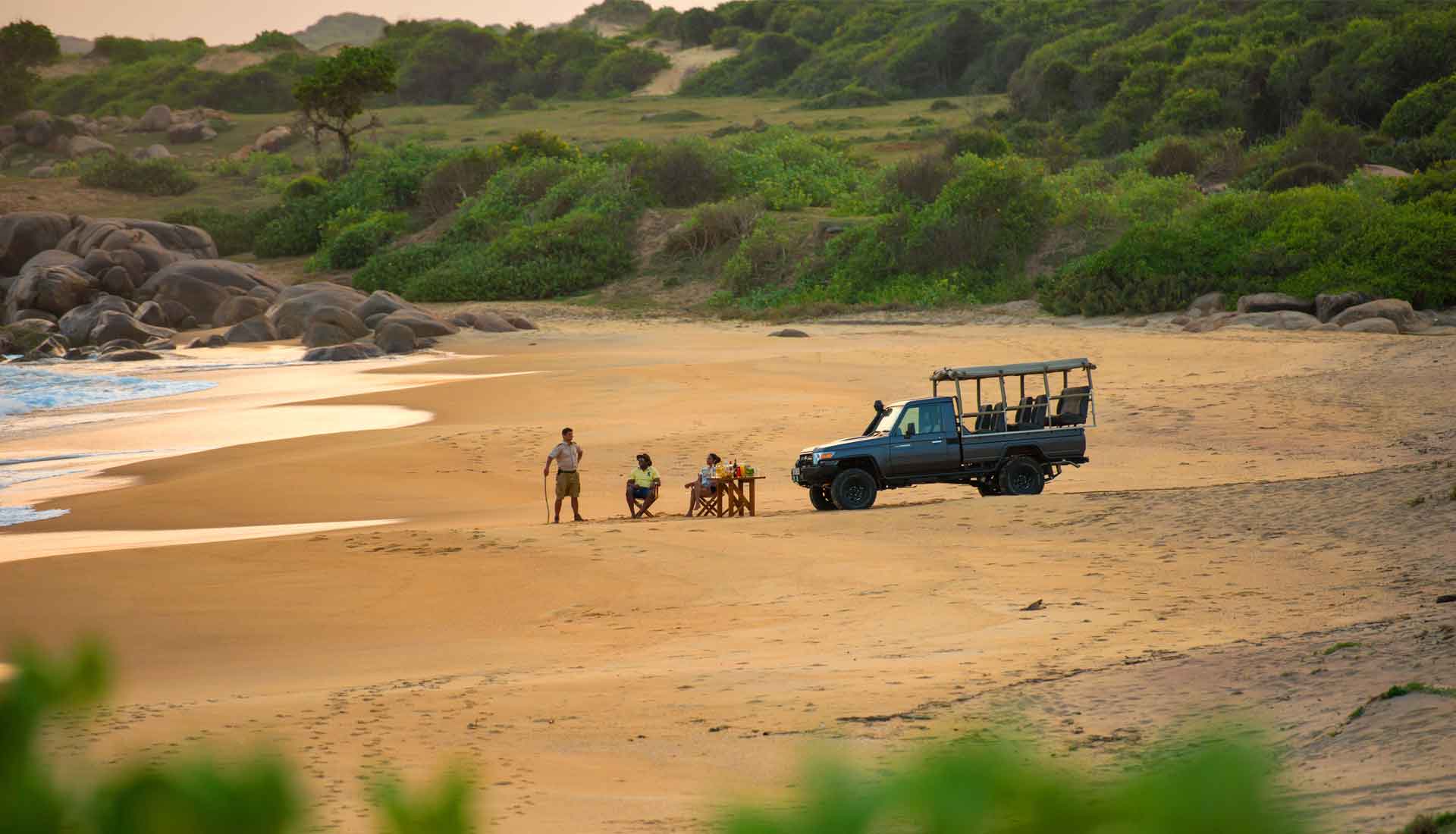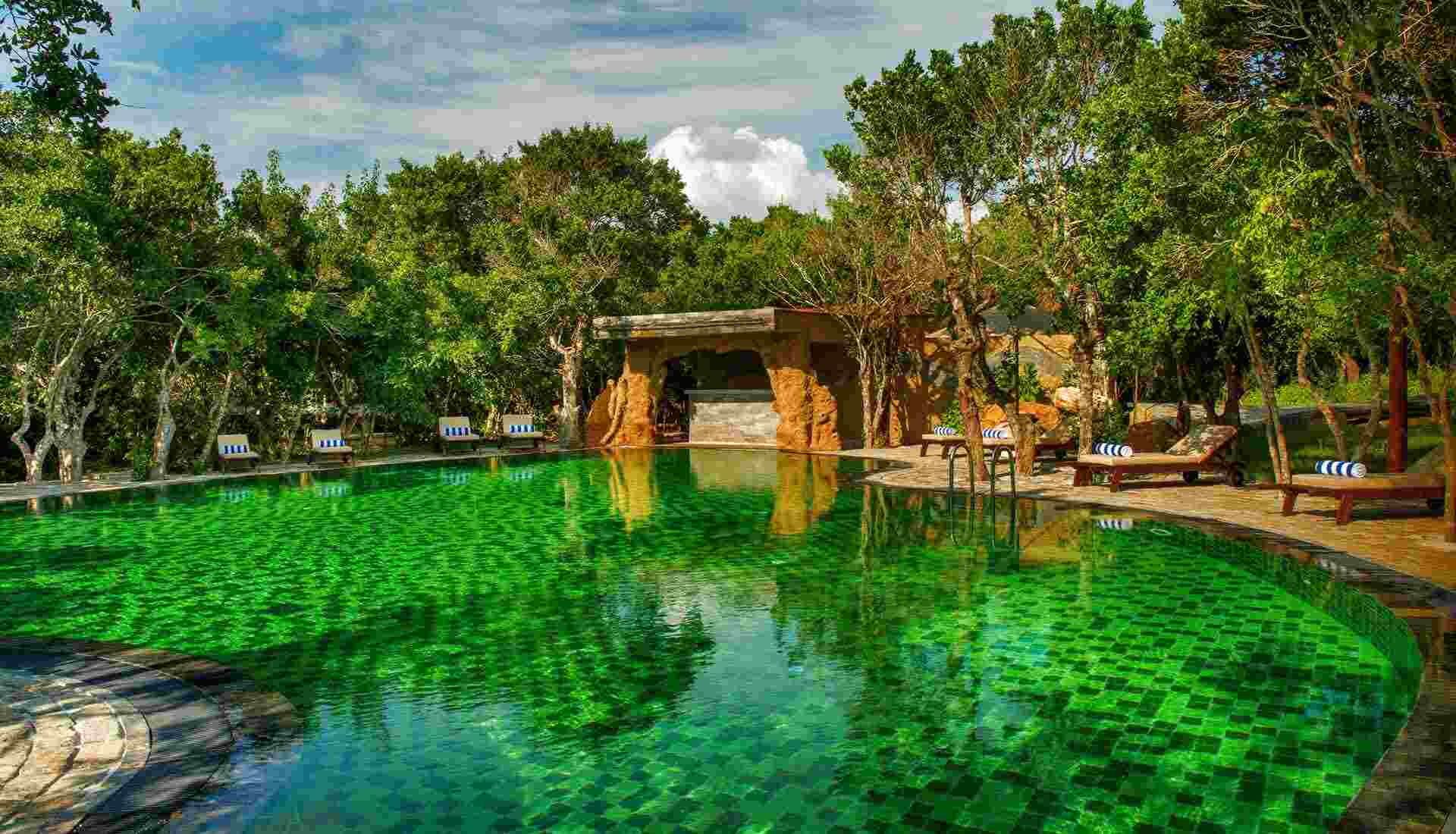 Zu den Annehmlichkeiten des Resorts gehören ein großer Dschungel-Pool, ein stilvoller Spa-Bereich, ein Hauptpool hinter einer natürlichen Wasserfall-Kulisse sowie das Beach-Restaurant Basses mit Outdoor-Dining. Tägliche, geführte Game-Drives im Yala-Nationalpark mit erfahrenen Rangern ermöglichen die Beobachtung von Elefanten, Leoparden und tropischen Vögeln – ein Erlebnis, das Safari-Abenteuer und entspannten Luxus nahtlos verbindet.