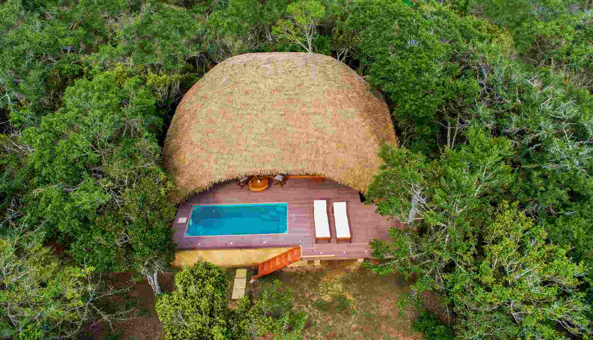 Eingebettet zwischen Dschungel, Dünen und Lagune liegt Uga Chena Huts, ein exklusives Boutique-Hotel direkt am Rande des Nationalparks. Der Name „Chena Huts“ erinnert an die jahrhundertealte Landwirtschaft in den kleinen Dschungellichtungen, den sogenannten Chenas. Das Resort verbindet intime Privatsphäre mit Naturerlebnis und luxuriösem Komfort.