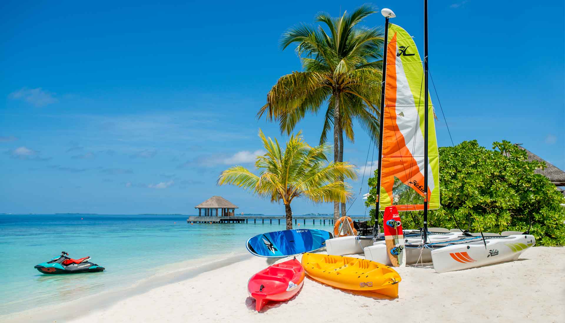 Die Insel bietet zahlreiche Aktivitäten: ein PADI‑zertifiziertes Tauchzentrum, Schnorchelausflüge, Wassersport, Yoga, Tennis, Fitnessbereich, einen Kids‑Club („Little Bubbles Club“) und vielfältige wöchentliche Programme. Zum Schnorcheln eignet sich das etwa 30m vor der Insel gelegene Hausriff. Zusätzlich können Gäste romantische Erlebnisse wie Strand‑Hochzeiten, Floating Breakfasts oder private Dinner am Strand buchen.