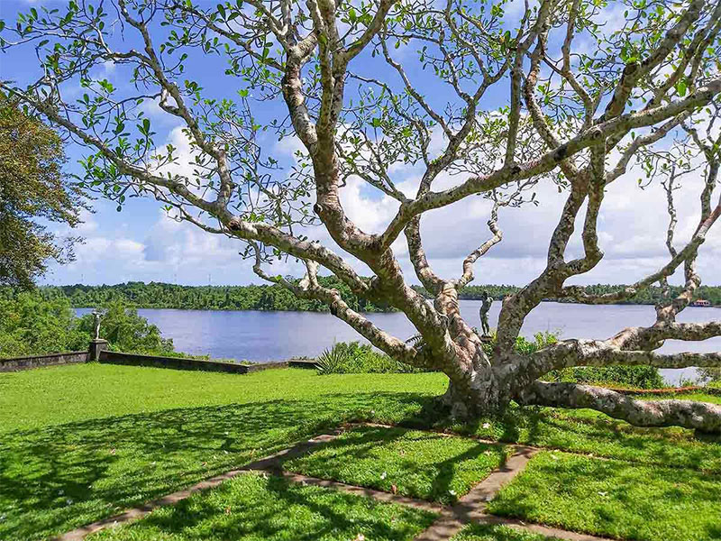 Lunuganga ist ein außergewöhnliches Boutique-Retreat am Ufer des Dedduwa-Sees, nur zehn Minuten vom entspannten Badeort Bentota entfernt. Das Anwesen, einst Landgut und Wochenendhaus des berühmten sri-lankischen Architekten Geoffrey Bawa, erstreckt sich über 12 Hektar und vereint historische Originalität, Architektur und weitläufige, kunstvoll gestaltete Gärten zu einem einzigartigen Erlebnis. Bawas Vision des „tropischen Modernismus“ zeigt sich in Pavillons, versteckten Wegen und sorgfältig komponierten Landschaften, die Elemente italienischer, englischer und asiatischer Gartentradition verschmelzen lassen.