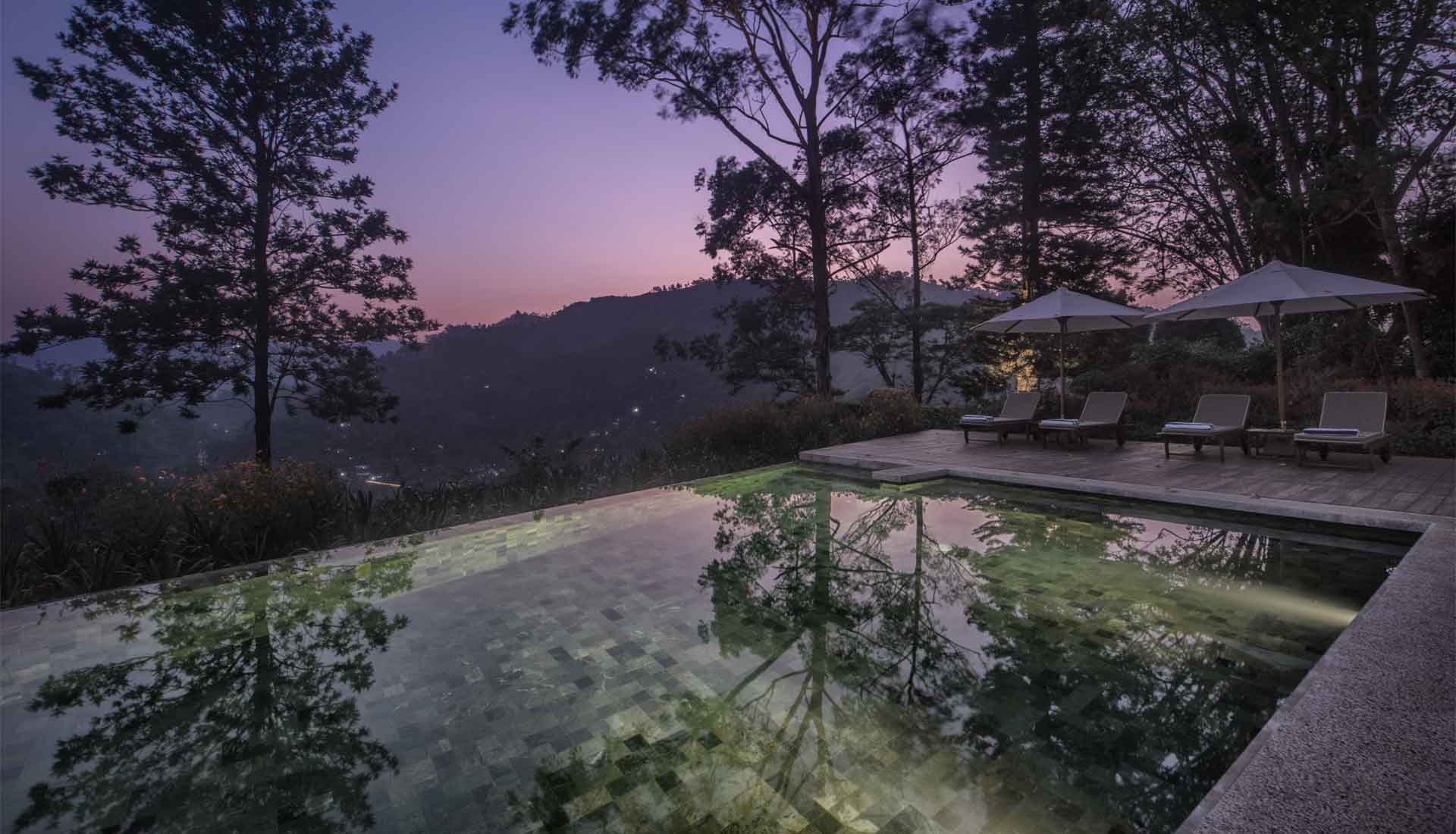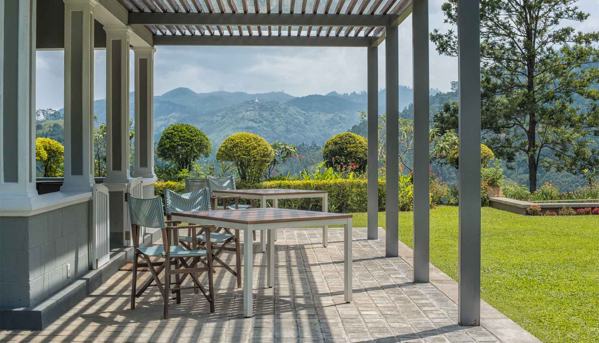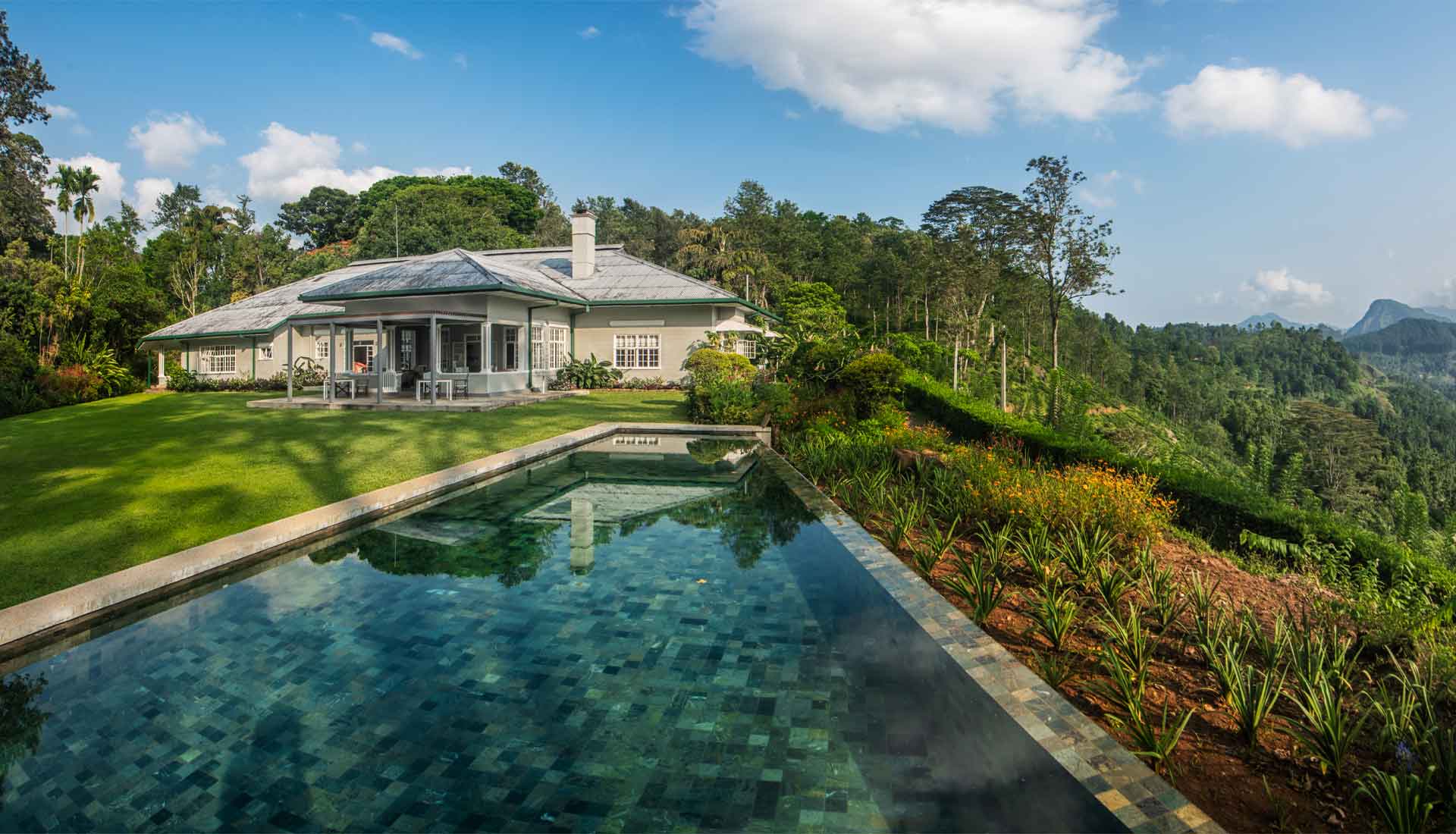 Das Hotel befindet sich in einem liebevoll restaurierten kolonialen Teepflanzer-Bungalow, der zu einem luxuriösen Boutique-Hotel mit nur fünf individuell gestalteten Schlafzimmern umgewandelt wurde. Großzügige Glasflächen, warme Materialien und zeitgemäßes Design schaffen fließende Übergänge zwischen Innenräumen und Natur und eröffnen offene Blicke auf Teeplantagen, Täler und die umliegenden Berge. Von der Terrasse und dem Infinity-Pool aus genießen Gäste eindrucksvolle Panoramen über die grünen Hügel des Hochlands.