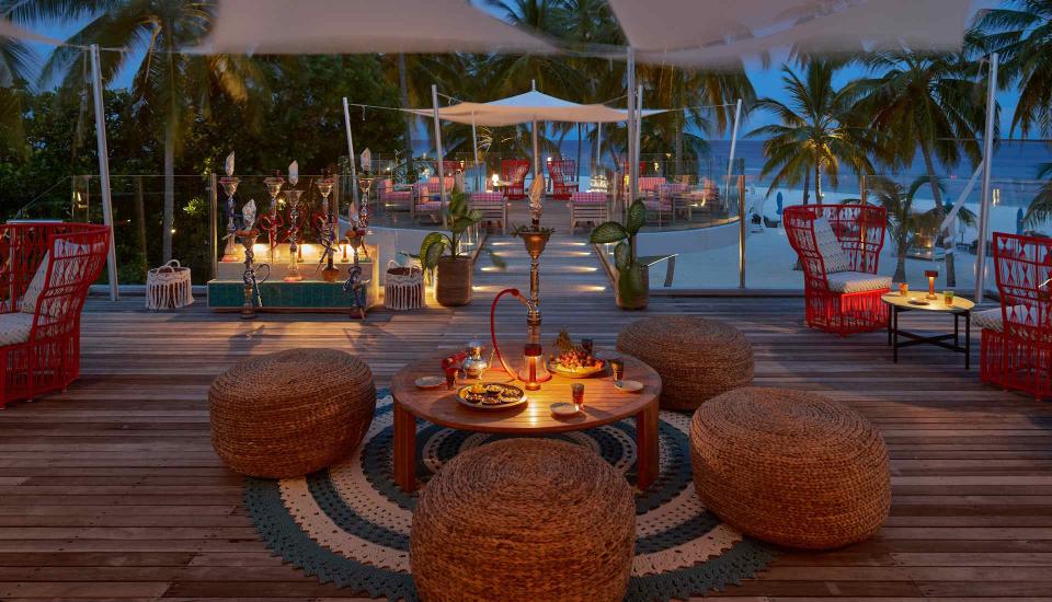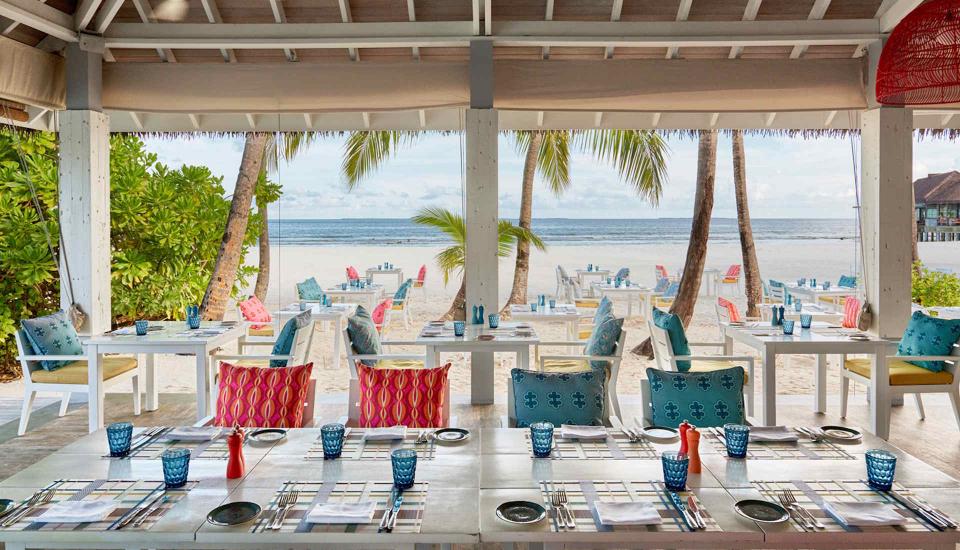 Das Resort bietet eine breite Auswahl an kulinarischen Konzepten: vom internationalen Hauptrestaurant Beach Kitchen mit wechselnden Themenabenden über das asiatisch-inspirierte Kanusan, den Arabian Grill mit Aromen aus dem Nahen Osten bis zum Crab Shack mit Seafood-Kreationen auf der Sandbank. Die Bars und der Beach Club sind zentrale Treffpunkte für Gäste, mit Live-Musik, DJ-Sets und Cocktails. Der Fehi Spa verfügt über mehrere Behandlungsräume inmitten tropischer Vegetation, ein Dampfbad, Yoga-Pavillon sowie Anwendungen auf Basis natürlicher Pflegeprodukte. Ergänzt wird das Angebot durch einen Fitnessbereich, Wassersportzentrum, Tauchschule und individuell gestaltbare Ausflüge – darunter Sunset Cruises, Schnorchel-Touren oder private Dinner-Erlebnisse. Für Familien gibt es einen betreuten Kinderclub mit vielfältigem Programm.