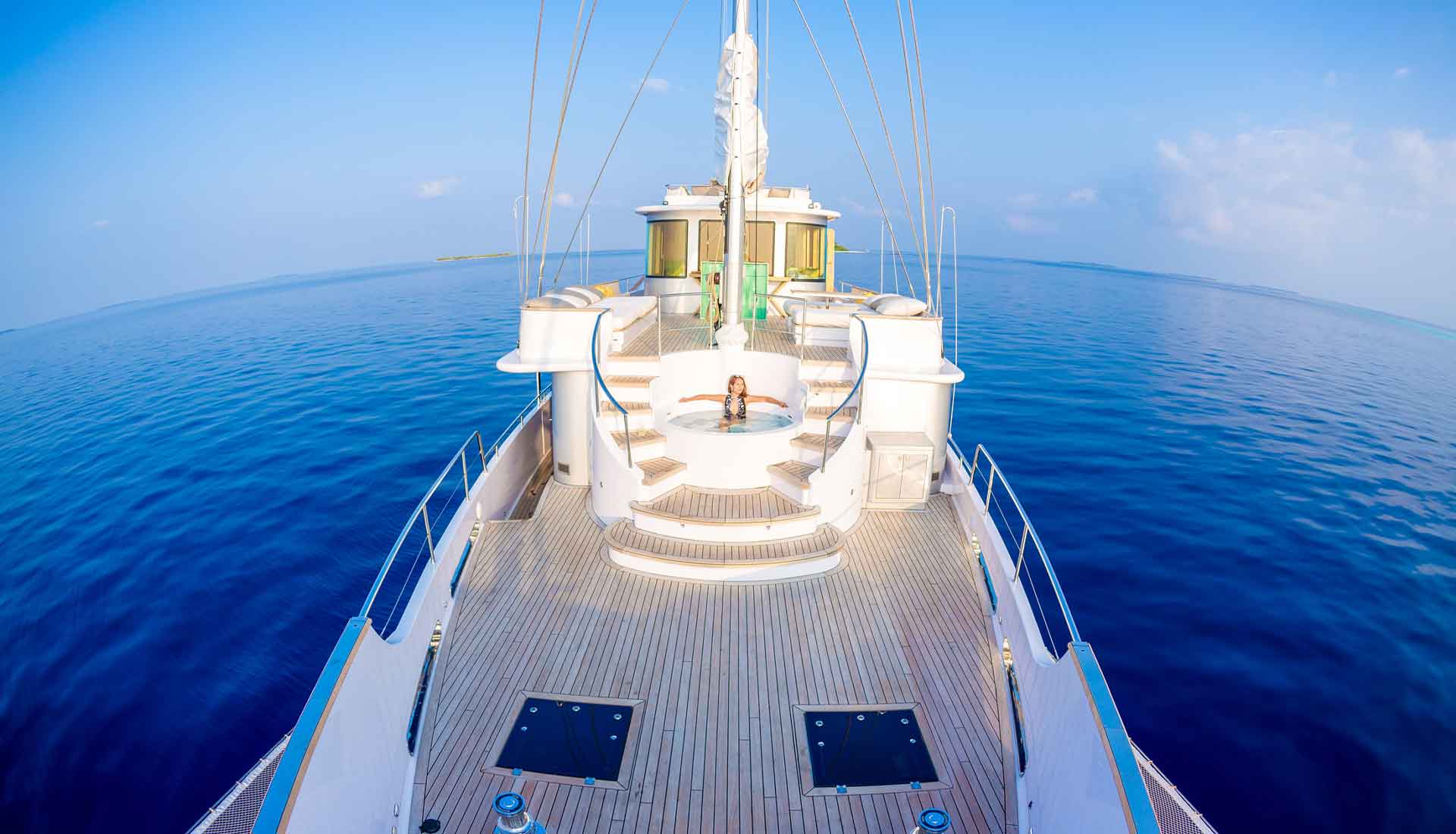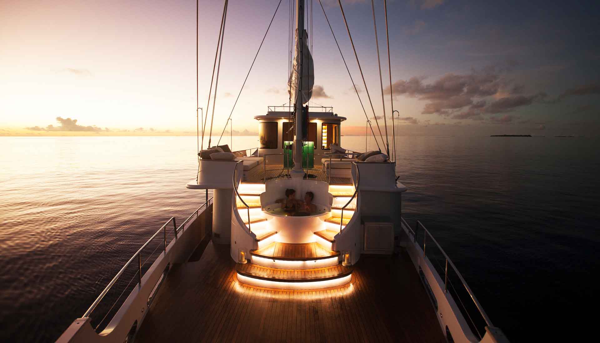 Großzügige Innen- und Außenbereiche laden zum Entspannen ein: ein Lounge- und Essbereich im Inneren, Sonnendecks mit Loungebereichen, ein Jacuzzi für zwei Personen sowie Platz für Spa-Behandlungen an Bord durch erfahrene, von Six Senses geschulte Therapeuten. Kulinarisch werden die Gäste von einem privaten Koch verwöhnt – von individuellen Menüs über Picknicks auf einsamen Sandbänken bis hin zu romantischen Dinnern unter dem Sternenhimmel.