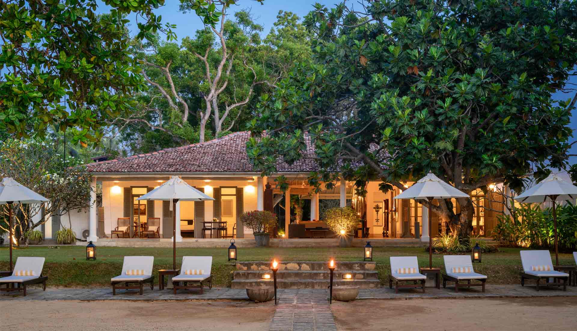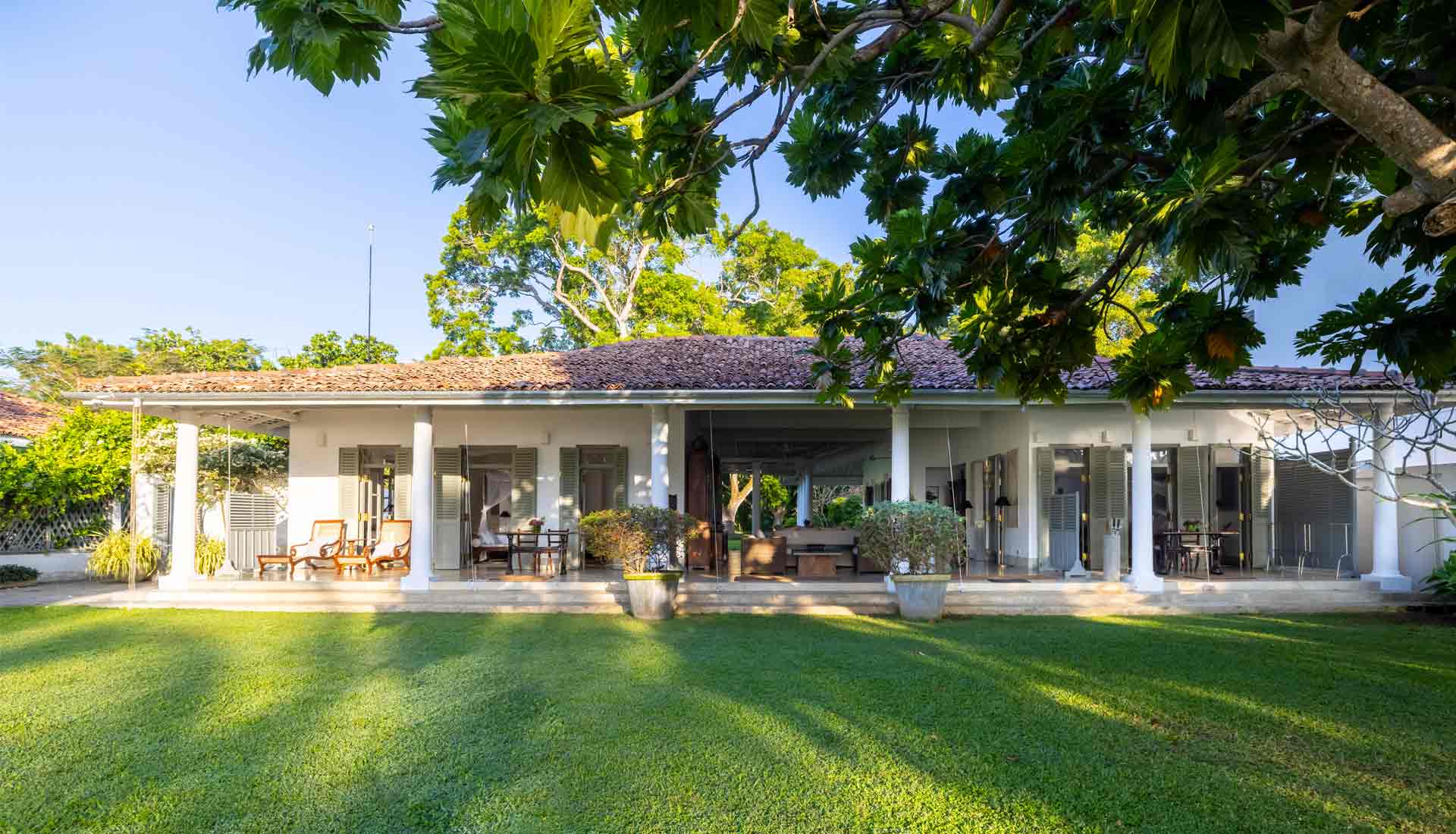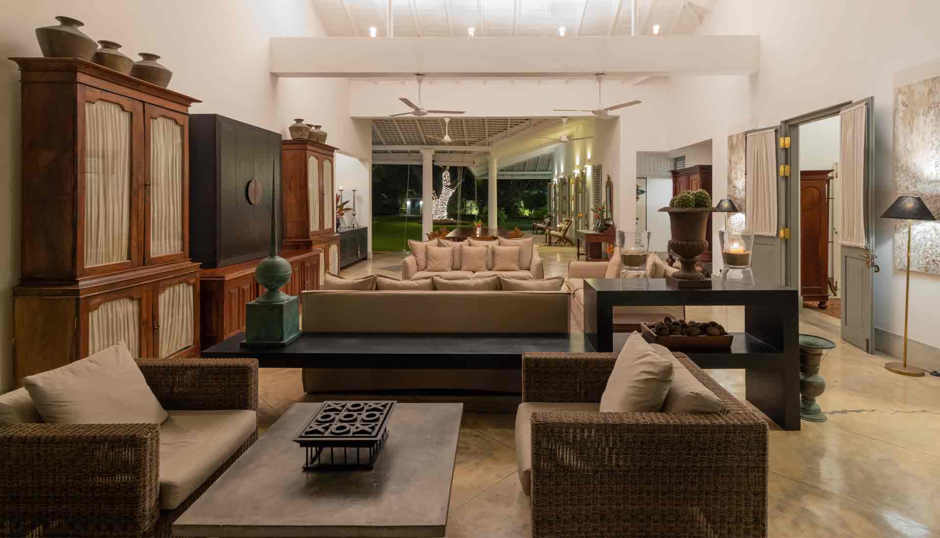 Die Unterkunft bietet verschiedene Optionen, um den individuellen Bedürfnissen gerecht zu werden: Das Haupthaus mit vier Schlafzimmern, das abgeschiedene Pool House oder das private Kurumba House, das mit einem eigenen Service-Team für absolute Privatsphäre sorgt. Die kolonial inspirierte Architektur mit hohen Decken, Fensterläden und offenen Veranden ist mit antiken Möbeln aus vergangenen Zeiten ausgestattet, was eine authentische sri-lankische Atmosphäre vermittelt. Ob in der Master Suite des Haupthauses oder in einem der privaten Rückzugsorte – Gäste erleben hier höchsten Komfort, abgerundet durch personalisierten Service.