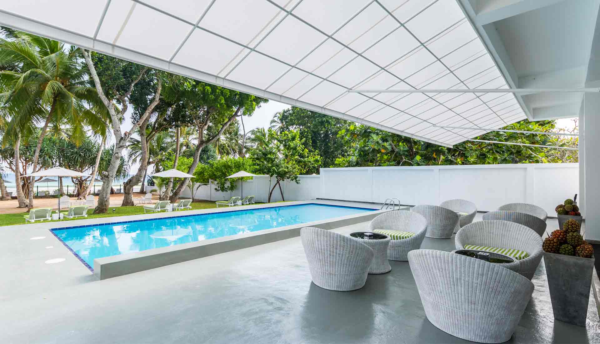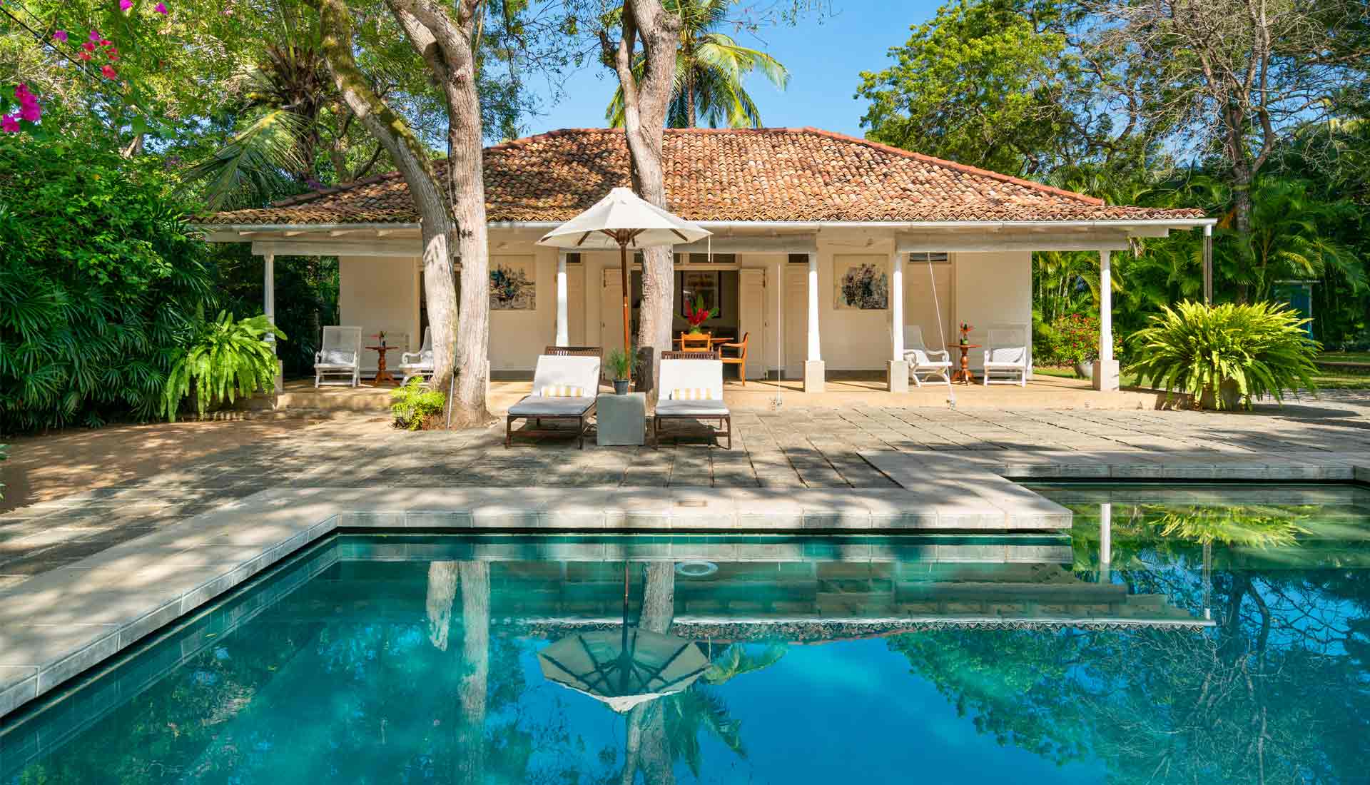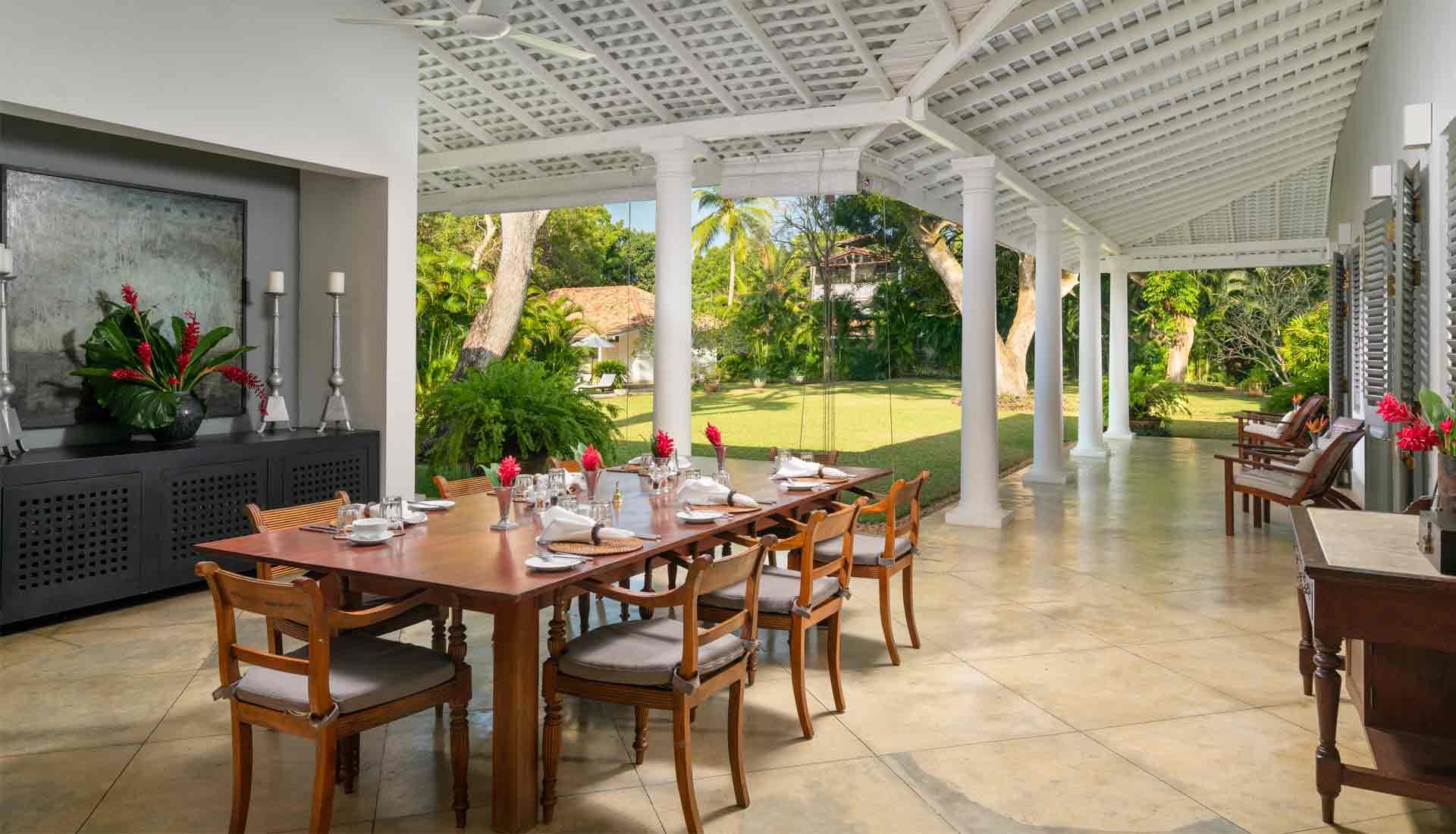 Die Unterkunft bietet verschiedene Optionen, um den individuellen Bedürfnissen gerecht zu werden: Das Haupthaus mit vier Schlafzimmern, das abgeschiedene Pool House oder das private Kurumba House, das mit einem eigenen Service-Team für absolute Privatsphäre sorgt. Die kolonial inspirierte Architektur mit hohen Decken, Fensterläden und offenen Veranden ist mit antiken Möbeln aus vergangenen Zeiten ausgestattet, was eine authentische sri-lankische Atmosphäre vermittelt. Ob in der Master Suite des Haupthauses oder in einem der privaten Rückzugsorte – Gäste erleben hier höchsten Komfort, abgerundet durch personalisierten Service.