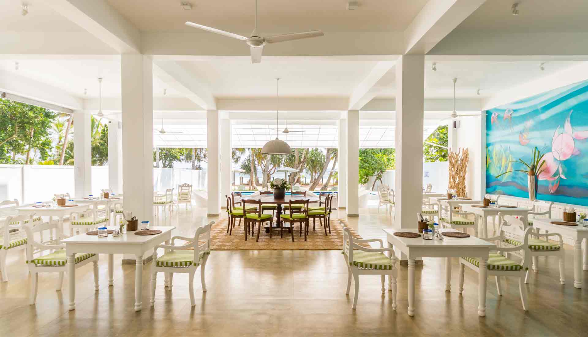 Auch kulinarisch hat Taru Villas Mawella viel zu bieten: In der offenen Speisehalle wird eine Auswahl an lokal inspirierten Gerichten serviert, während frische Meeresfrüchte bei einem Strand-BBQ genossen werden können. Die Gerichte, von einem erfahrenen Chefkoch zubereitet, bieten eine Mischung aus traditioneller sri-lankischer Küche und internationalen Favoriten. Ein Spaziergang durch den Garten führt zu weiteren kulinarischen Erlebnissen im The Tangalle Social, dem charmanten Schwesterhotel. Für Entdecker bietet die Umgebung von Tangalle zudem zahlreiche Sehenswürdigkeiten, darunter der Mulkirigala Tempel und die ruhigen Gewässer der Mawella-Lagune.