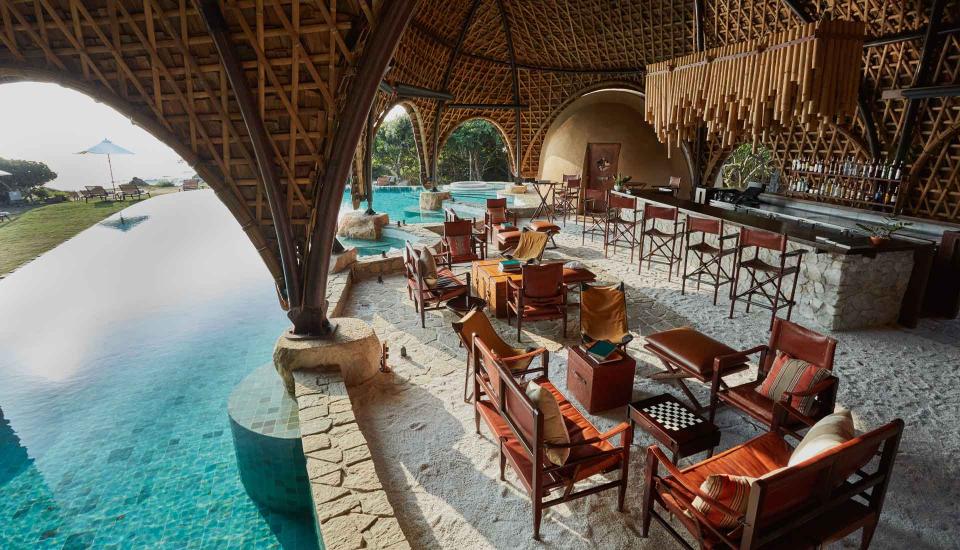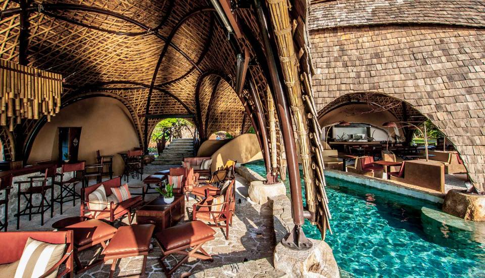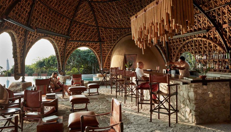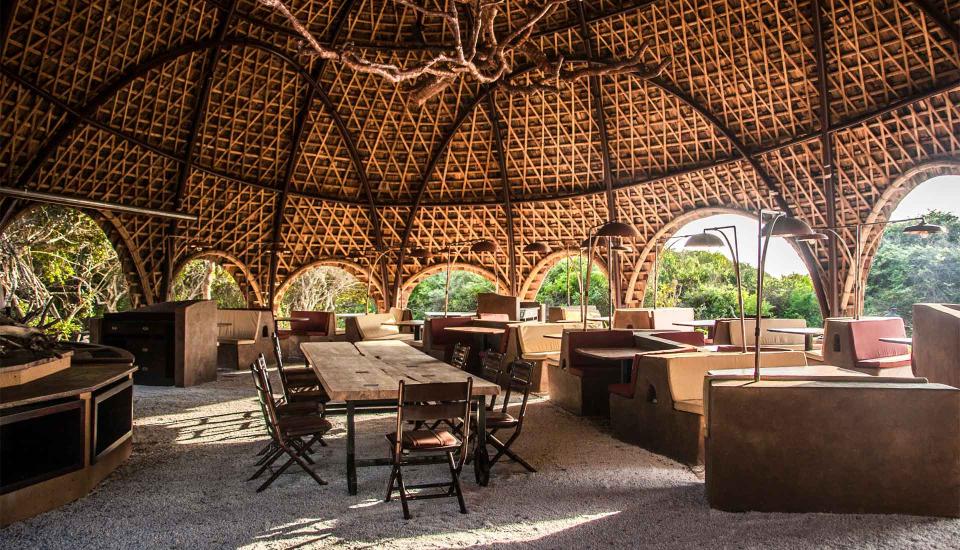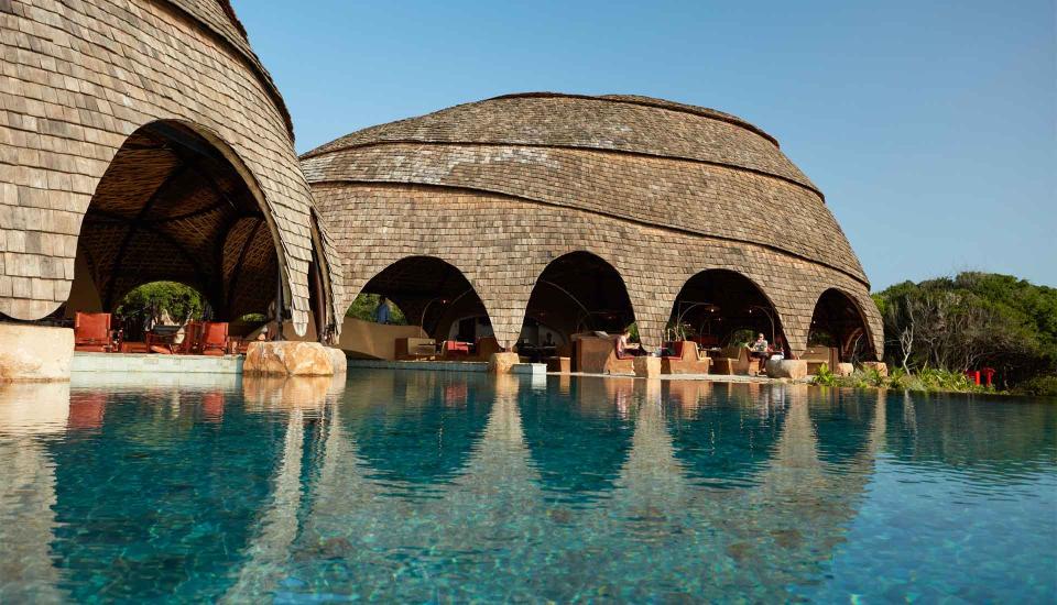Die im Freien gelegene, mit Bambus gestaltete Ten Tuskers Bar und der Dining Pavilion, dessen Architektur die verstreuten Felsbrocken am goldenen Strand aufgreift, rahmen den imposanten Pool des Resorts ein. Gäste genießen hier kreative, täglich wechselnde Menüs der authentischen sri-lankischen Küche, Sundowner-Cocktails oder Picknicks auf den Sanddünen, während die Sonne über dem Indischen Ozean untergeht.